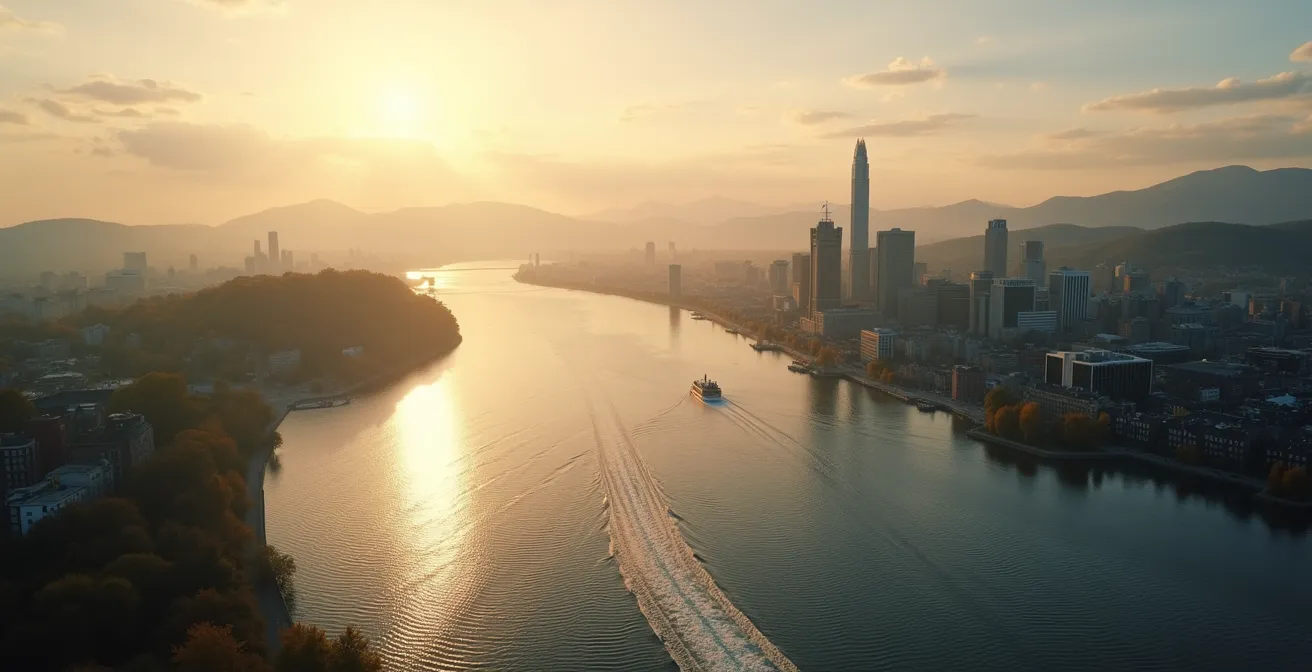 The ferry isn’t just a mode of transport; it’s a strategic photographic tool. The 12-minute crossing between Quebec City and Lévis is a slow, cinematic pan across the entire skyline. Unlike a static viewpoint, the boat’s movement allows for subtle shifts in composition, letting you perfectly align the elements of the old town, the fortifications, and the modern city. The water in the foreground adds a dynamic element—ice floes in winter, golden reflections at sunset—that a land-based view can’t replicate.